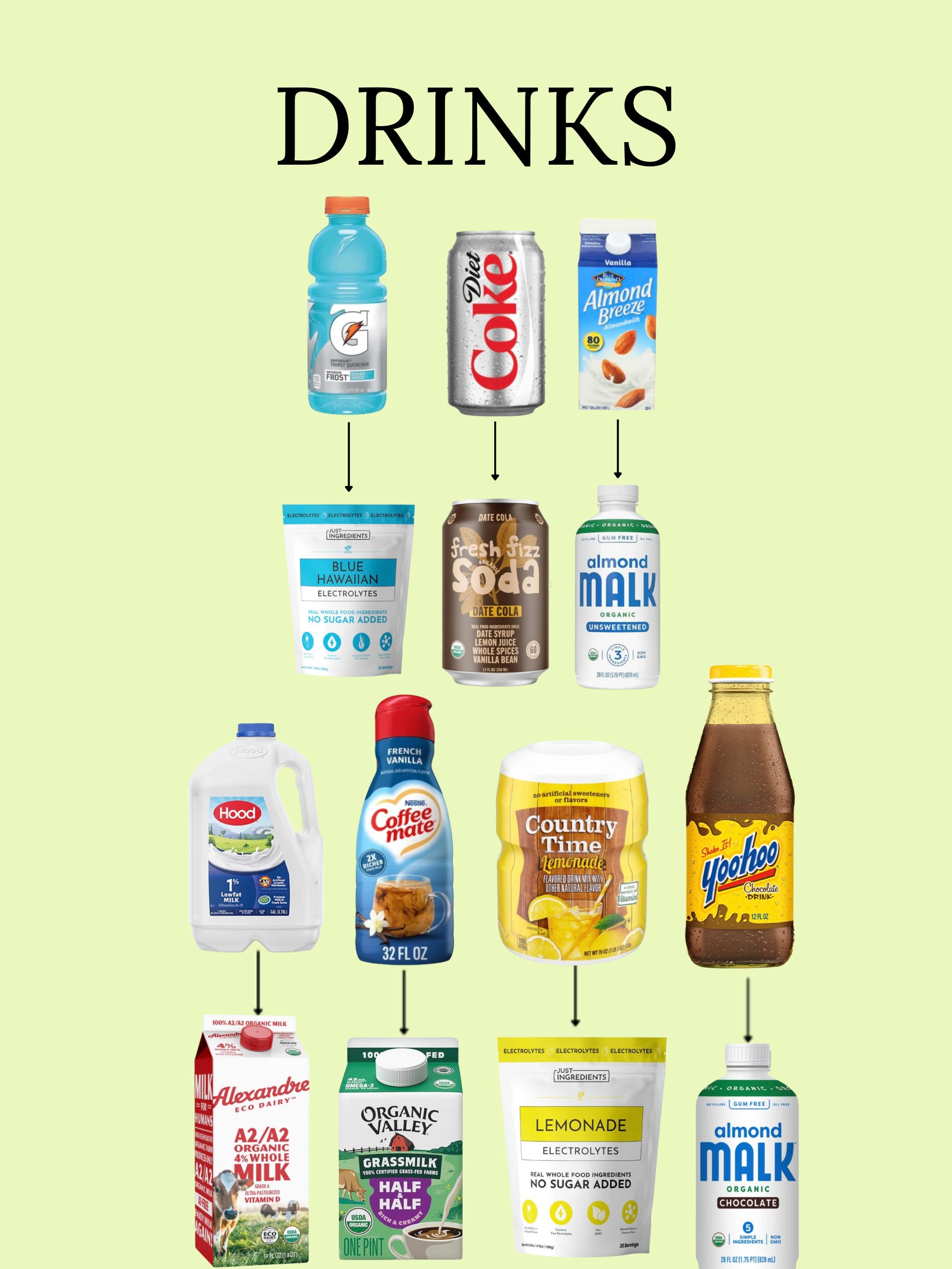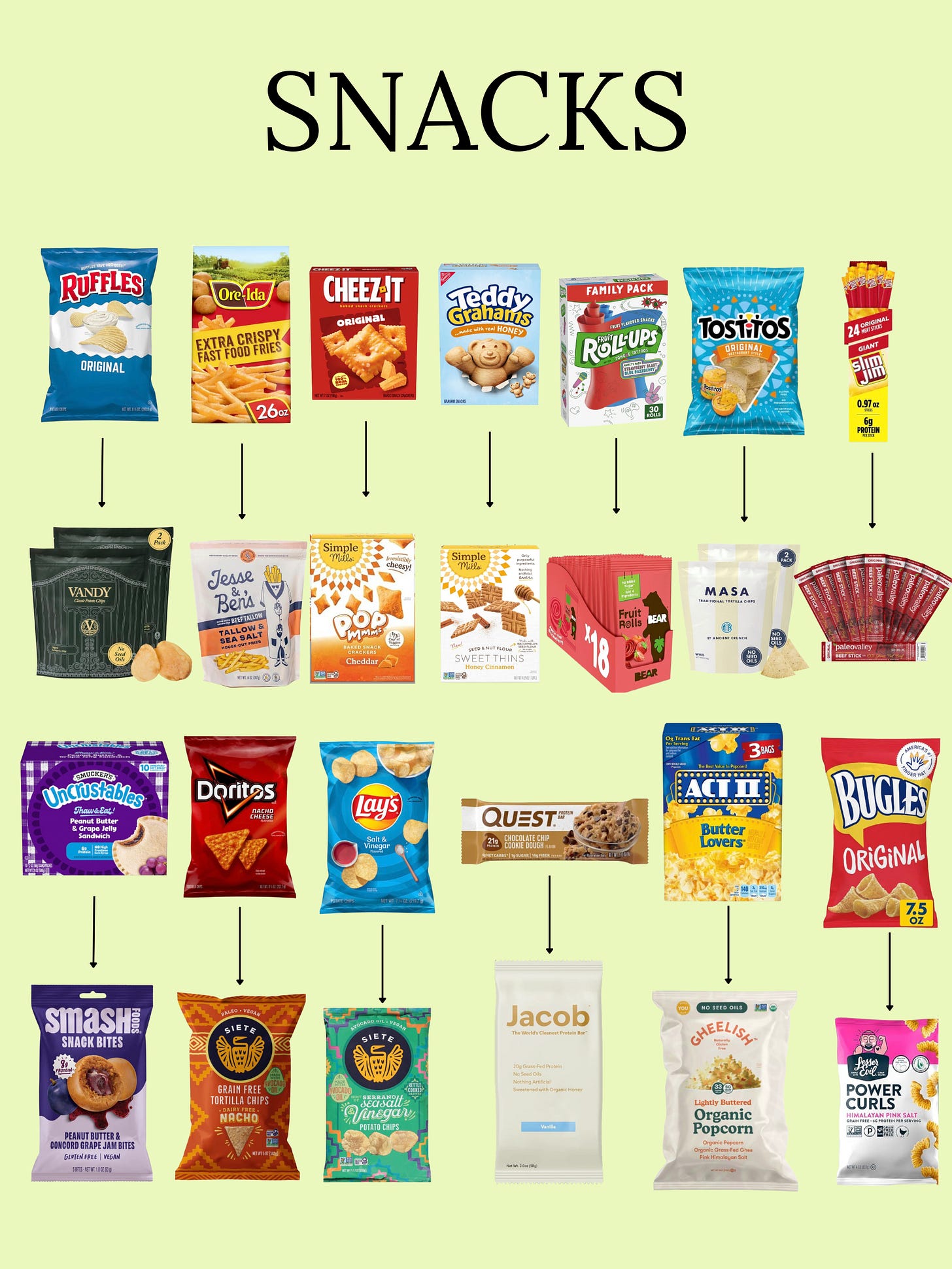 We’re kicking off Our August Wellness Series: Healthier Swaps of the Iconic Staples You Know and Love with something fun, nostalgic, and deeply practical: 45+ better-for-you versions of your childhood favorites—think Doritos, Coke, Cosmic Brownies, Tostitos, Ben & Jerry’s, Nutter Butters, Raisin Bran, Honey Nut Cheerios, Uncrustables, Ruffles, Fruit Roll-Ups, Teddy Grahams, and Coke.
